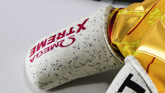 Aplicación adicional de material resistente en la sección lateral del guante. Brinda protección al látex para evitar el desgaste causado por los lanzamientos.