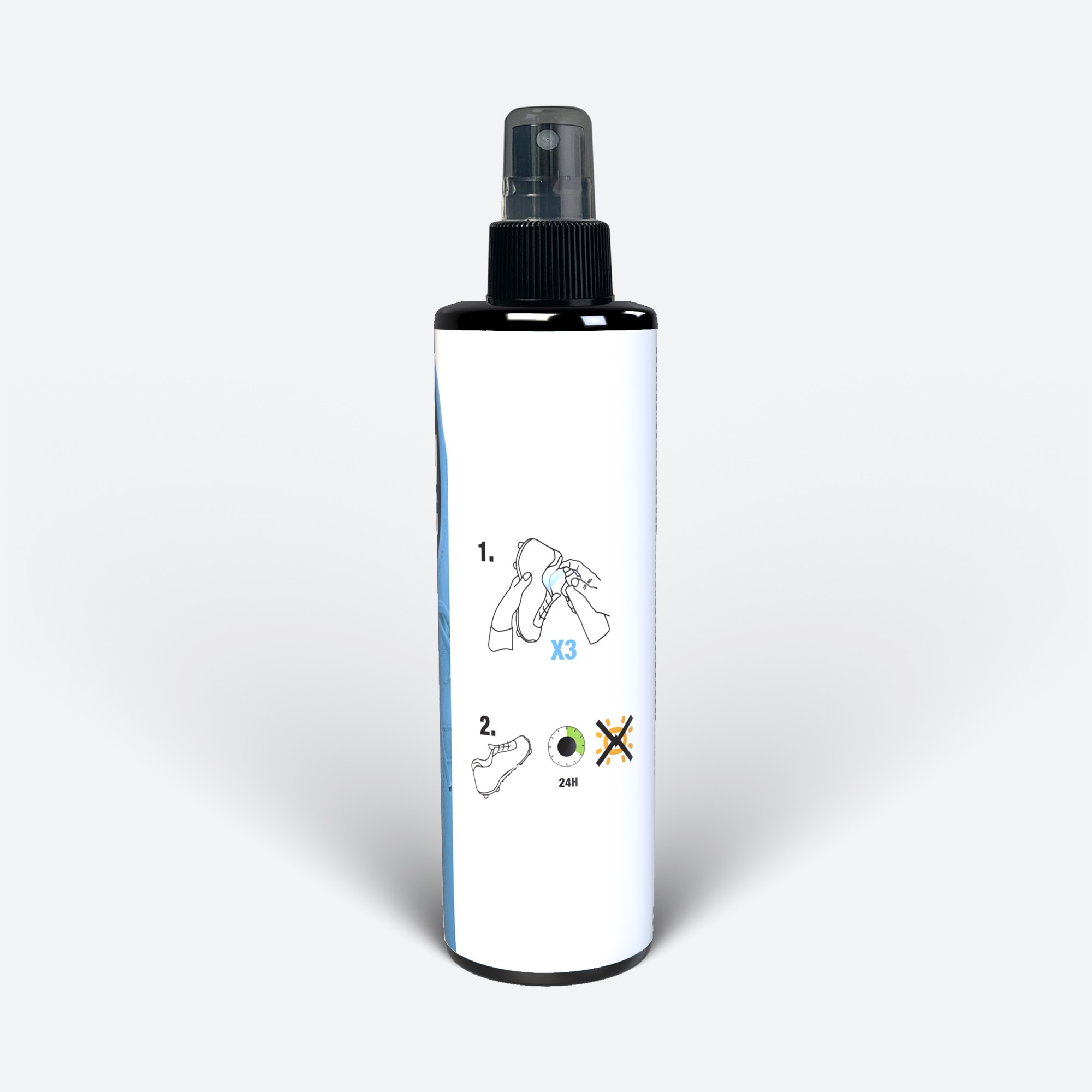 - Vaporiser au besoin sur les chaussures ou l'équipement choisis.