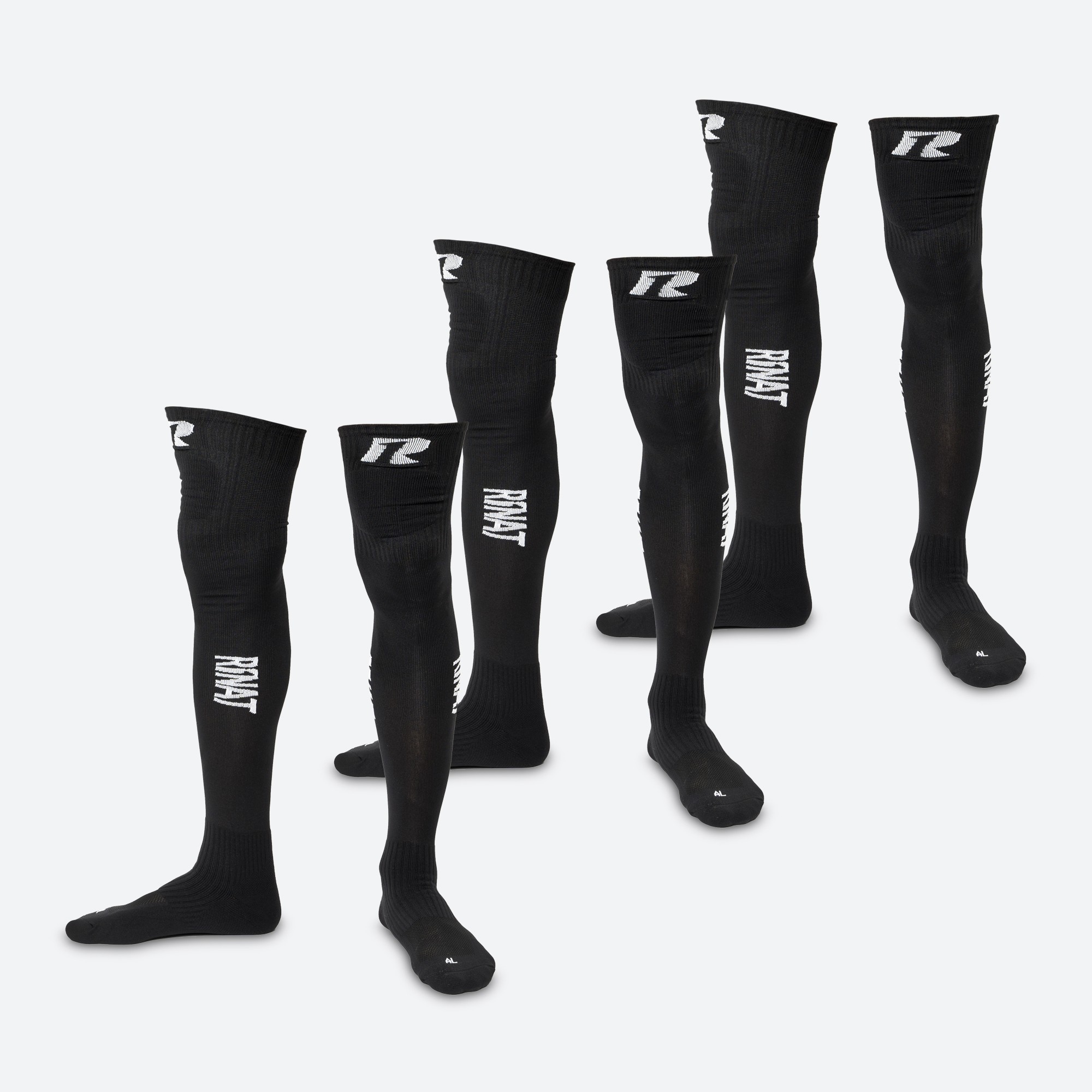 Extra lange sokken die een textiel versterking hebben in het gebied van de knieën om de impact te beschermen en te verminderen. Ze hebben de anatomische vorm van een been, inclusief de knie om je meer troost te geven. Ze passen ook in je been om altijd hun plaats te bewaren.